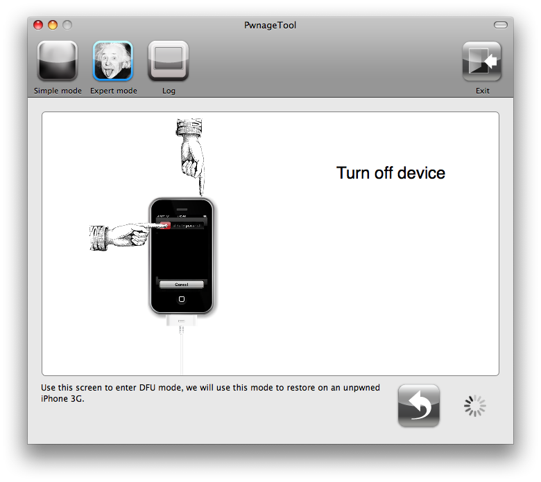 When done correctly, Pwnage 2.2 will display a message telling your that it successfully entered DFU mode. iTunes will also pop-up.
