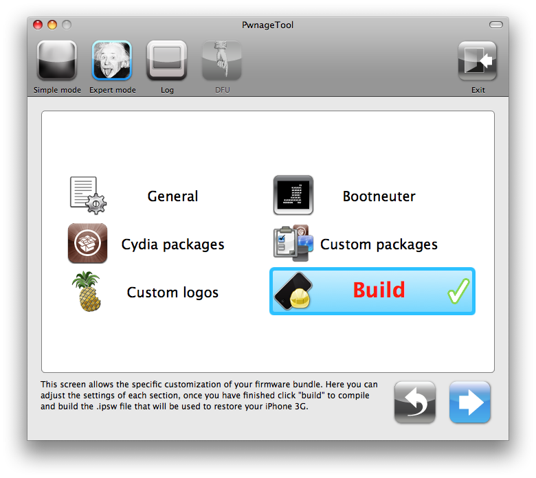 You are now ready to begin the pwnage process! Click the Build button to select it then click the Blue arrow button to begin.