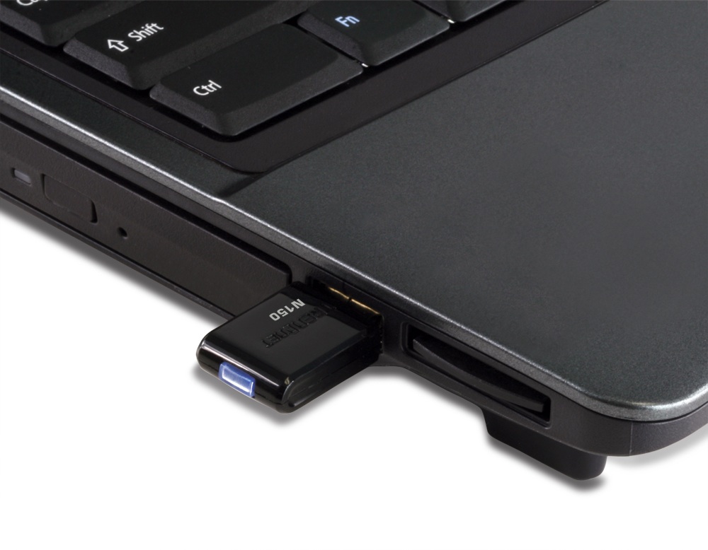 The 150Mbps Mini Wireless N USB Adapter connects a laptop or desktop computer to a wireless n network at up to 6x the speed and 3x the coverage of a wireless g connection. One-touch Wi-Fi Protected Setup or WPS technology eliminates the hassle of entering complicated codes in order to connect to a wireless network. Simply press the WPS button on a compatible router (most TRENDnet routers feature a WPS button), then press the WPS button on TRENDnet’s 150Mbps Mini Wireless N USB Adapter, confirm that you want to connect, and you’re connected!